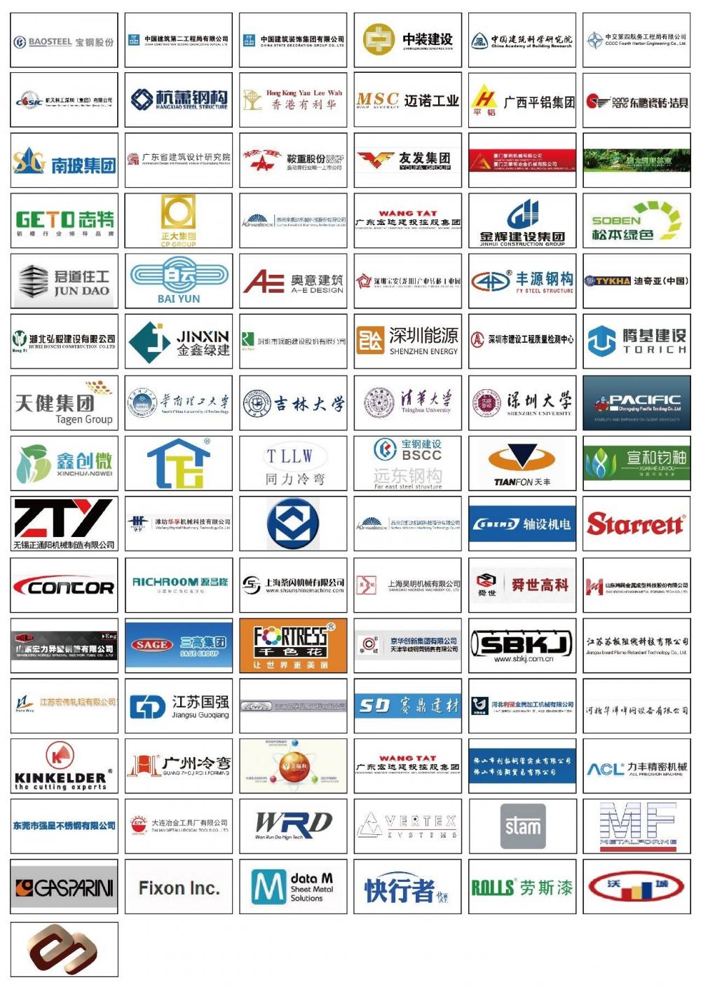 特別鳴謝以下機構對展會及系列活動的支持(排名不分先后) 中國綠色建筑與節能專業委員會 建筑工業化產業技術創新戰略聯盟 全國工商聯城市基礎設施商會 住房和城鄉建設部政策研究中心 中國社會科學院城市發展與環境研究所 中國建筑科學研究院 中國建筑學會 中國鋼鐵工業協會 中國鋼結構協會 中國基礎設施建設協會 中國住宅產業化建設促進會 中國市政工程建設協會 中國建筑業指數研究中心 中國鋼結構協會冷彎分會 中國金屬結構協會鋼結構分會 中國工程咨詢協會 中國工程建設標準化協會建筑產業化分會 中國貿促會冶金行業分會 中國建筑業品牌企業聯合會 中國商業經濟學會快裝產業分會 中國建筑產業化聯盟 中國裝配式建筑聯盟 中國粵西國際建設發展聯盟 中國綠色生態智慧城市產業網 國際管材協會 歐洲冷彎協會 東南亞鋼鐵工業協會 廣東省建筑節能協會 廣東省鋼結構協會 廣東省建筑材料行業協會 廣東陶瓷協會 廣東省工程造價協會 廣東省節能協會 廣東省低碳企業協會 廣東省招標投標協會 廣東省建材綠色產業技術創新促進會 廣東省墻體材料行業協會 廣東省綠建材委 臺灣金屬結構協會 香港建筑金屬結構協會 澳門金屬結構協會 臺灣輕型鋼結構協會 (香港)建造業議會 廣州市建材行業協會 深圳市綠色建筑協會 佛山市建筑節能協會 佛山市門窗業協會 湛江市建筑節能協會 惠州市綠色建筑與建筑節能協會 東莞市綠色建筑協會 珠海市綠色建筑協會 順德市鋼管協會 廣州縱覽會展有限公司 廣州綠筑會展有限公司