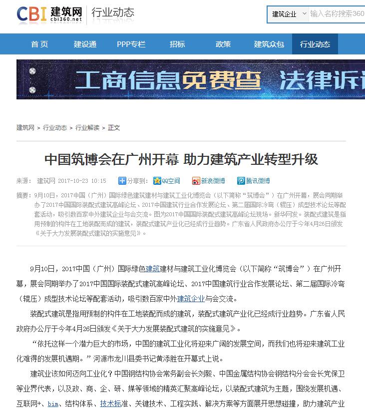 第一工程機械網發布有關2017中國裝配式建筑高峰論壇的報道 (2017-11-01)